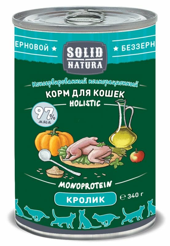 Влажный корм для кошек, Solid Natura Holistic, кролик, упаковка 6 шт х 340 г