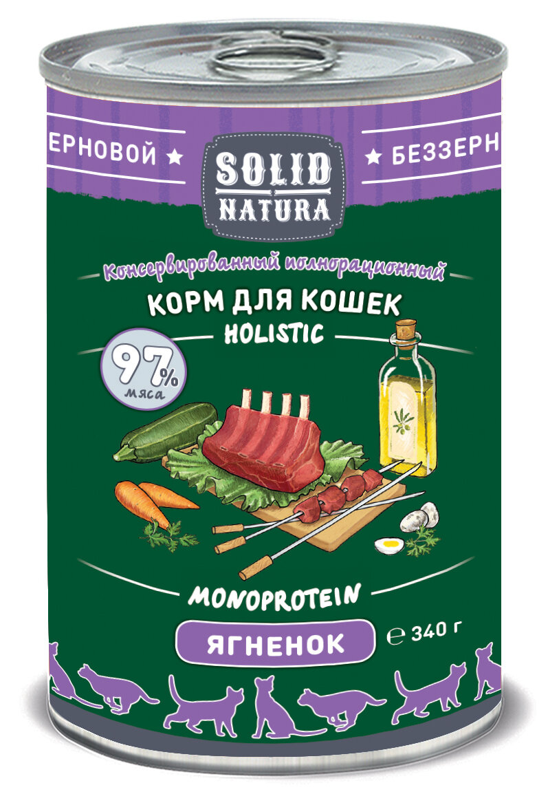 Solid Natura Holistic Ягнёнок влажный корм для кошек жестяная банка 0,34 кг, шт