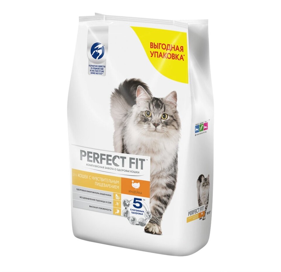 Корм сухой Perfect Fit Sensitive для взрослых кошек с чувствительным пищеварением, с индейкой, 10 кг