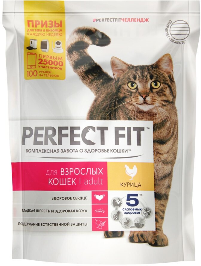 Корм сухой Perfect Fit для взрослых домашних кошек с курицей, 650г интересное: