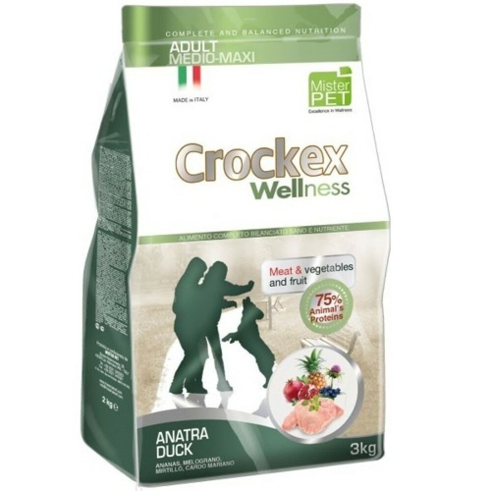 CROCKEX Wellness корм для взрослых собак средних и крупных пород, утка с рисом 3 кг