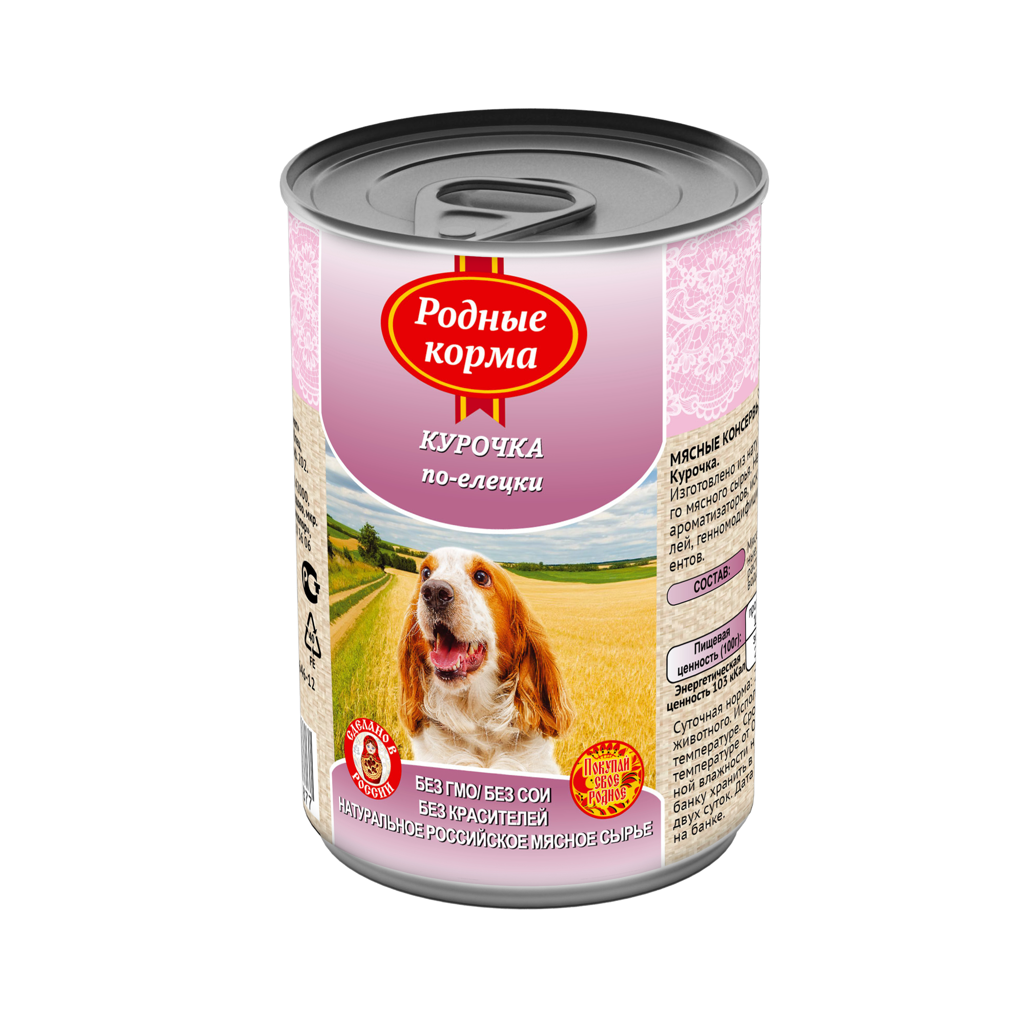 Родные корма Курочка по - елецки конс. для собак 410 г, упаковка 1 шт