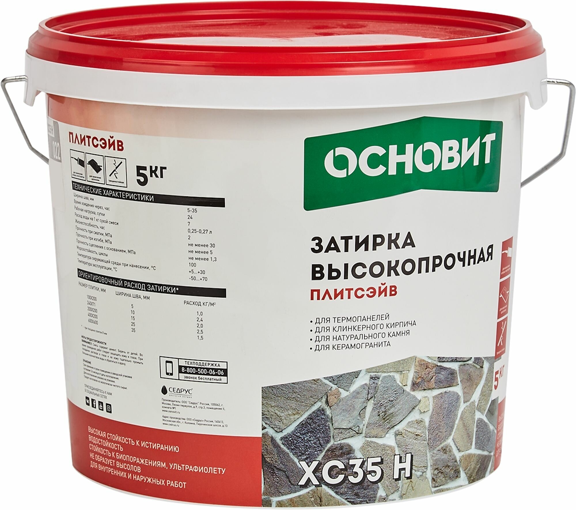 Основит Плитсейв XC35 H серый затирка цементная (5кг) / основит Плитсейв XC35 H серый затирка для швов высокопрочная цементная (5кг)