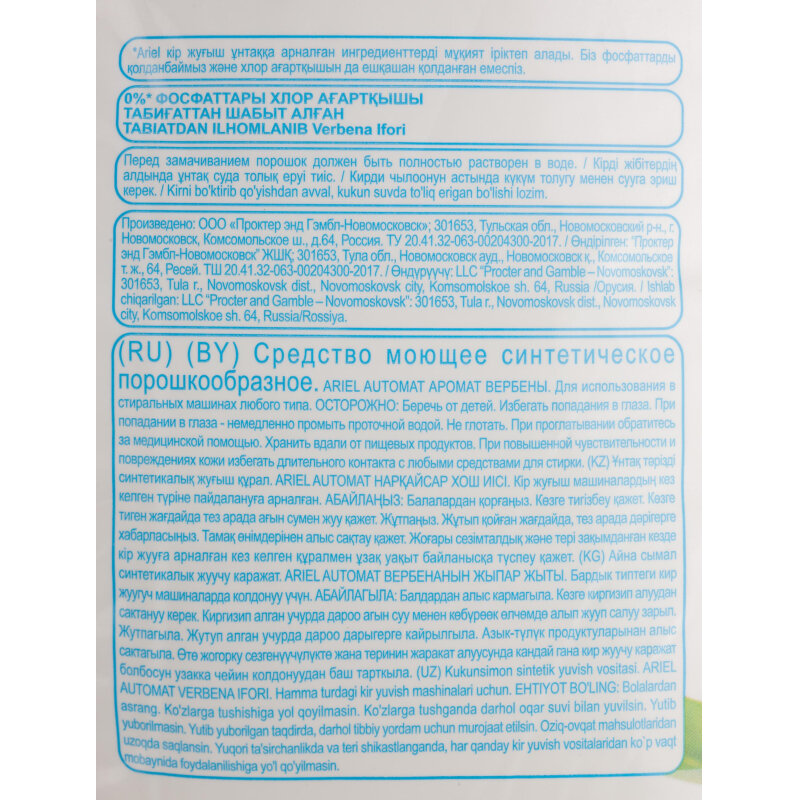 Стиральный порошок Ariel Автомат, Вербена, 30 стирок, 4,5 кг