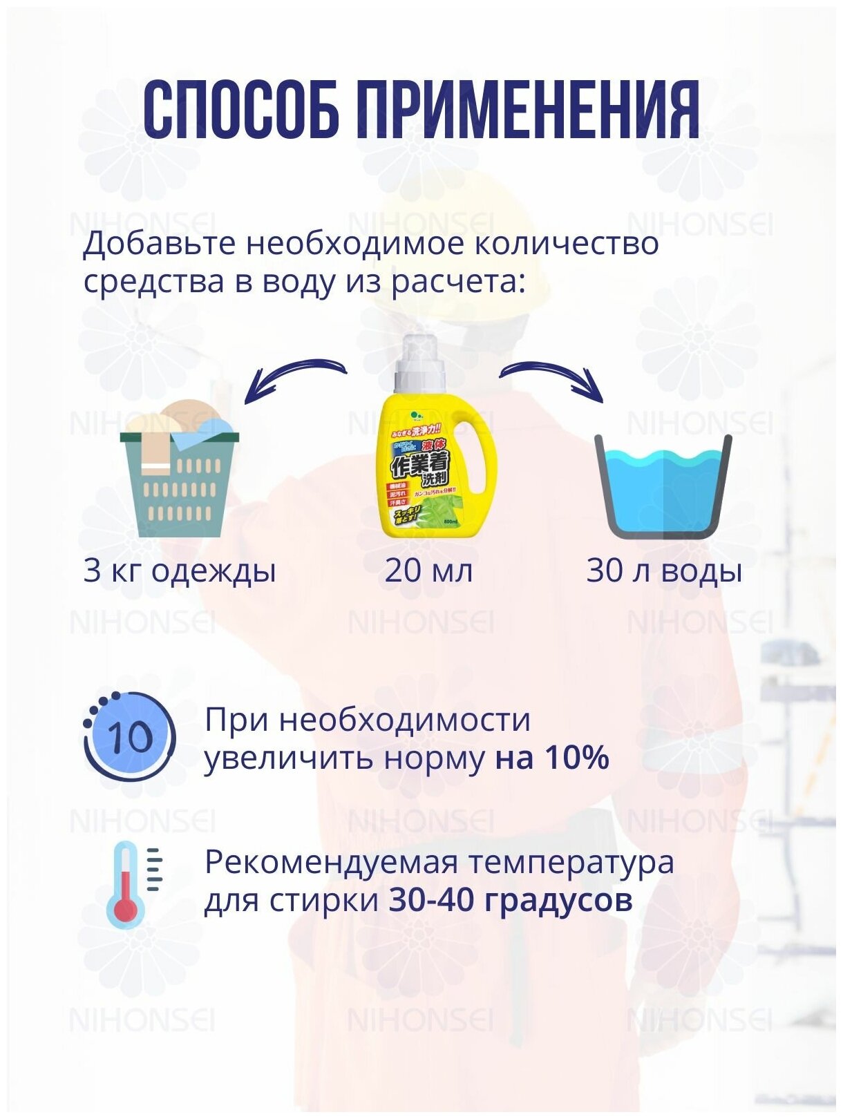 Гель для стирки рабочей и сильнозагрязненной одежды c ферментами 800 мл. MITSUEI