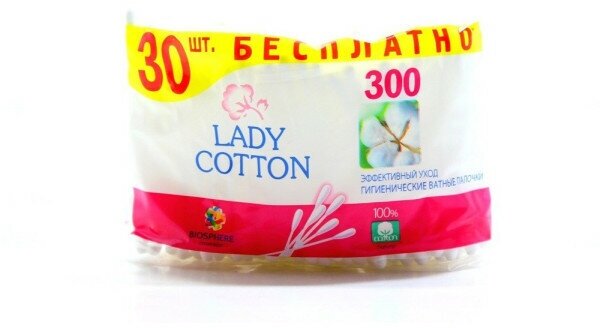 Ватные палочки Lady Cotton Гигиенические, 300 шт, в пакете (41203425) интересное: