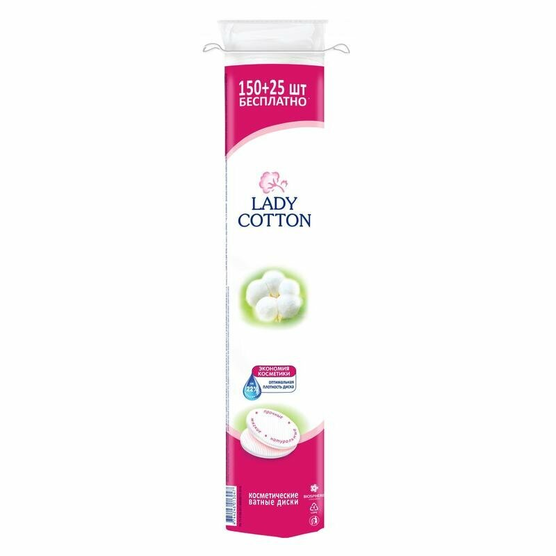 Купить Ватные диски Lady Cotton Косметические, прочные, мягкие, 175 шт (41103630)