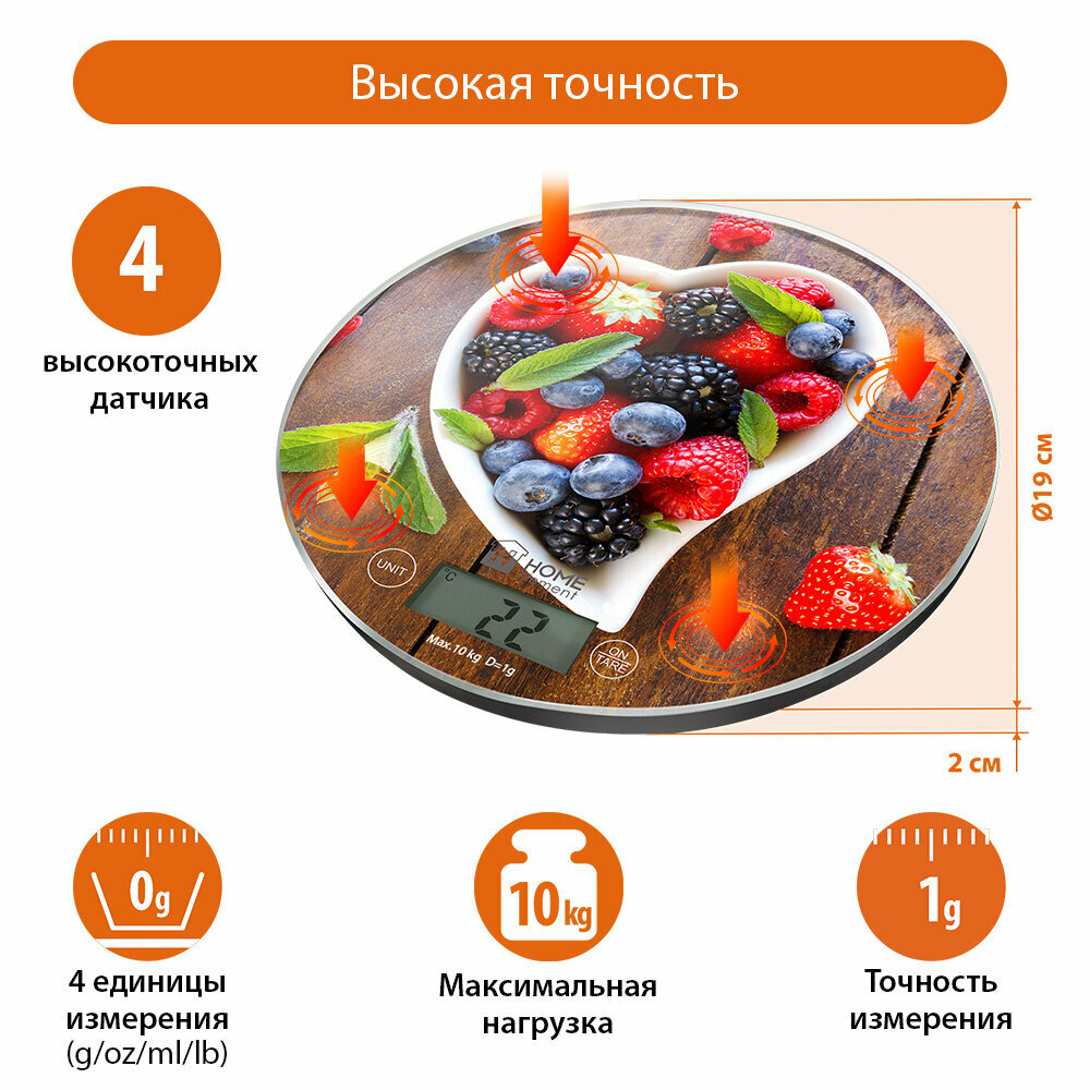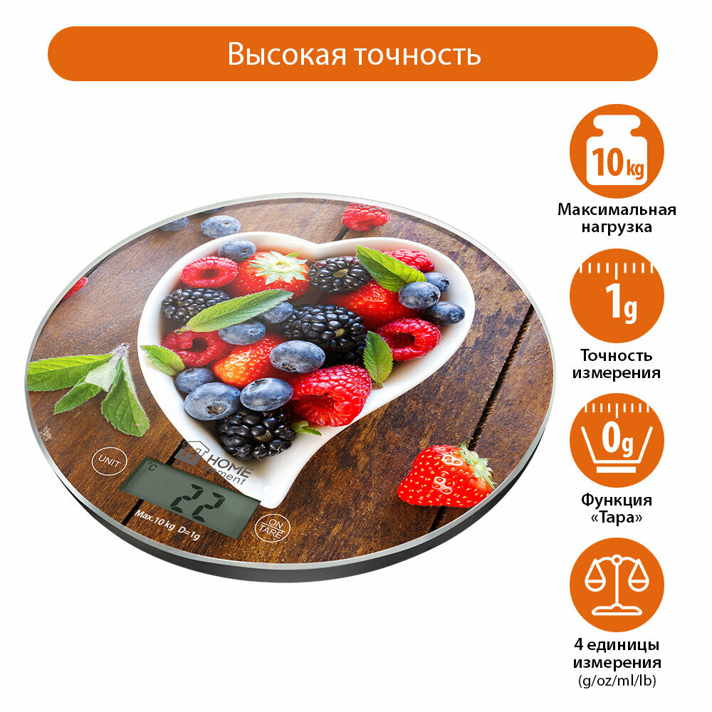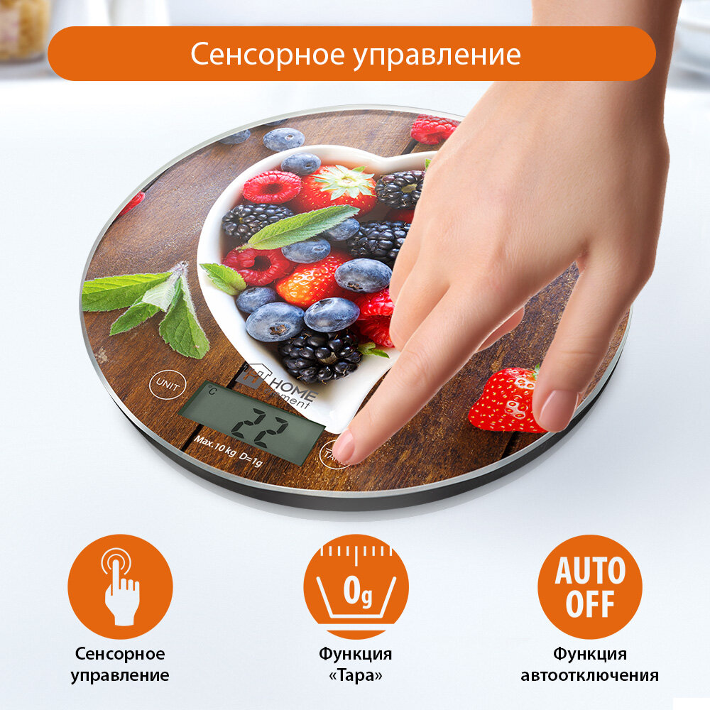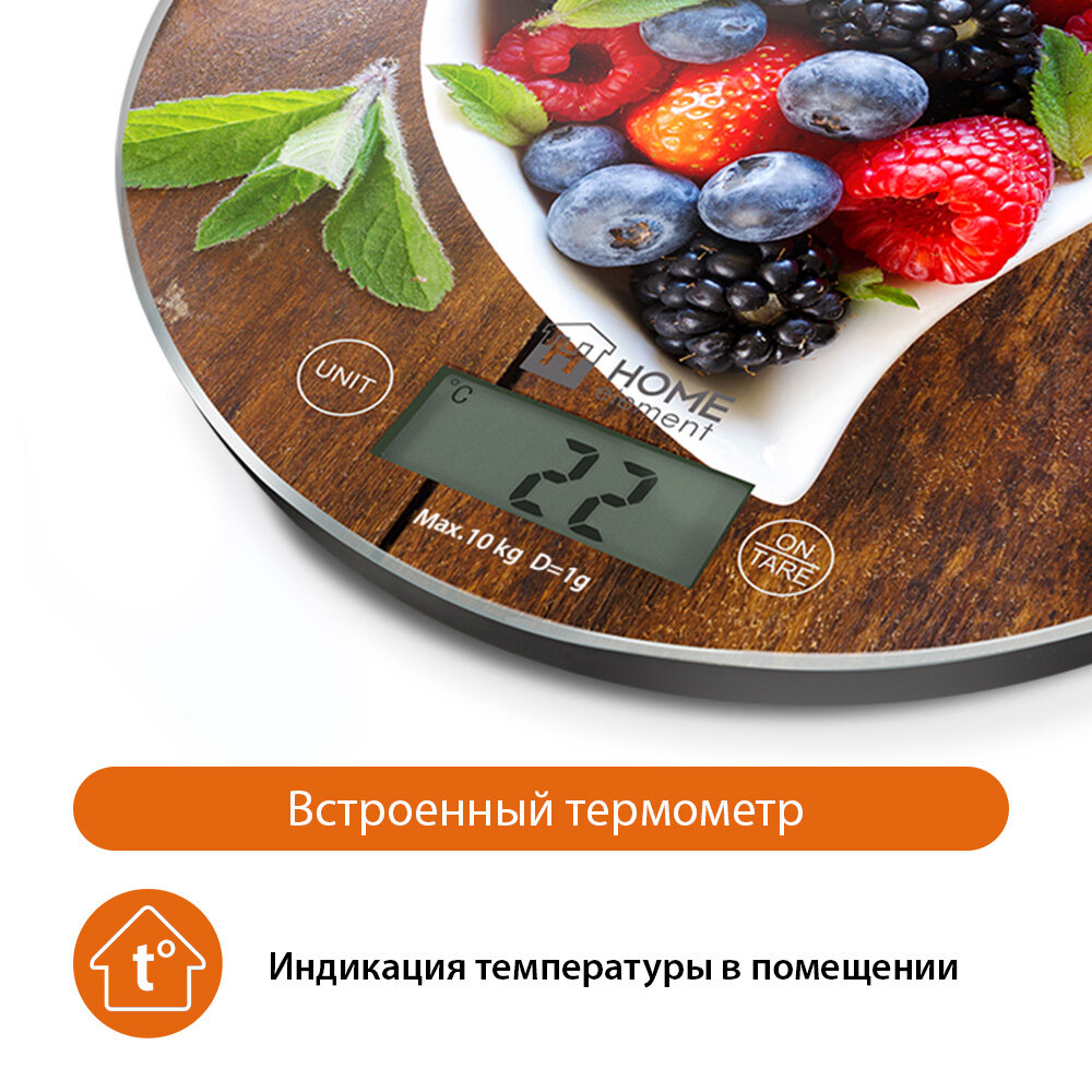 Весы кухонные HOME ELEMENT HE-SC933 ягодный микс сенсор, встроенный термометр