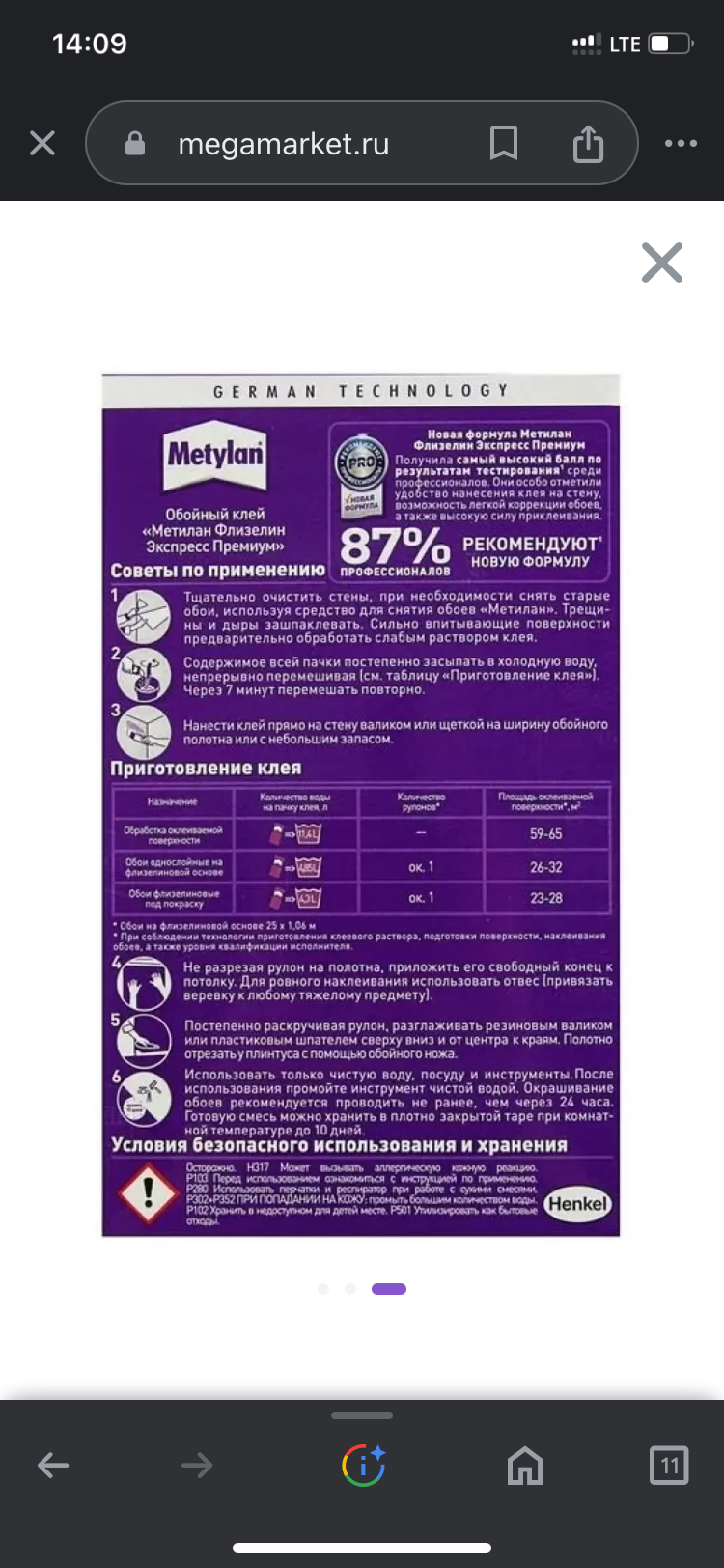 Клей для Обоев Метилан Премиум Флиз Экспресс 285ГР (18) Хенкель 2198927 .