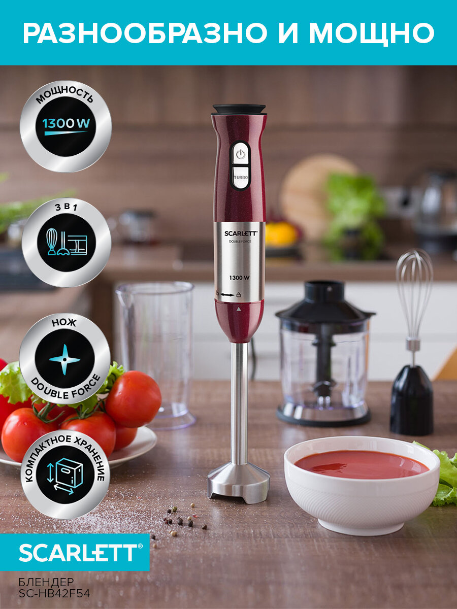 Блендер SCARLETT SC-HB42F54 1300 Вт, бордовый