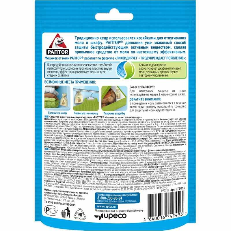 Раптор Мешочек от моли "Раптор", с запахом кедра, 1 шт