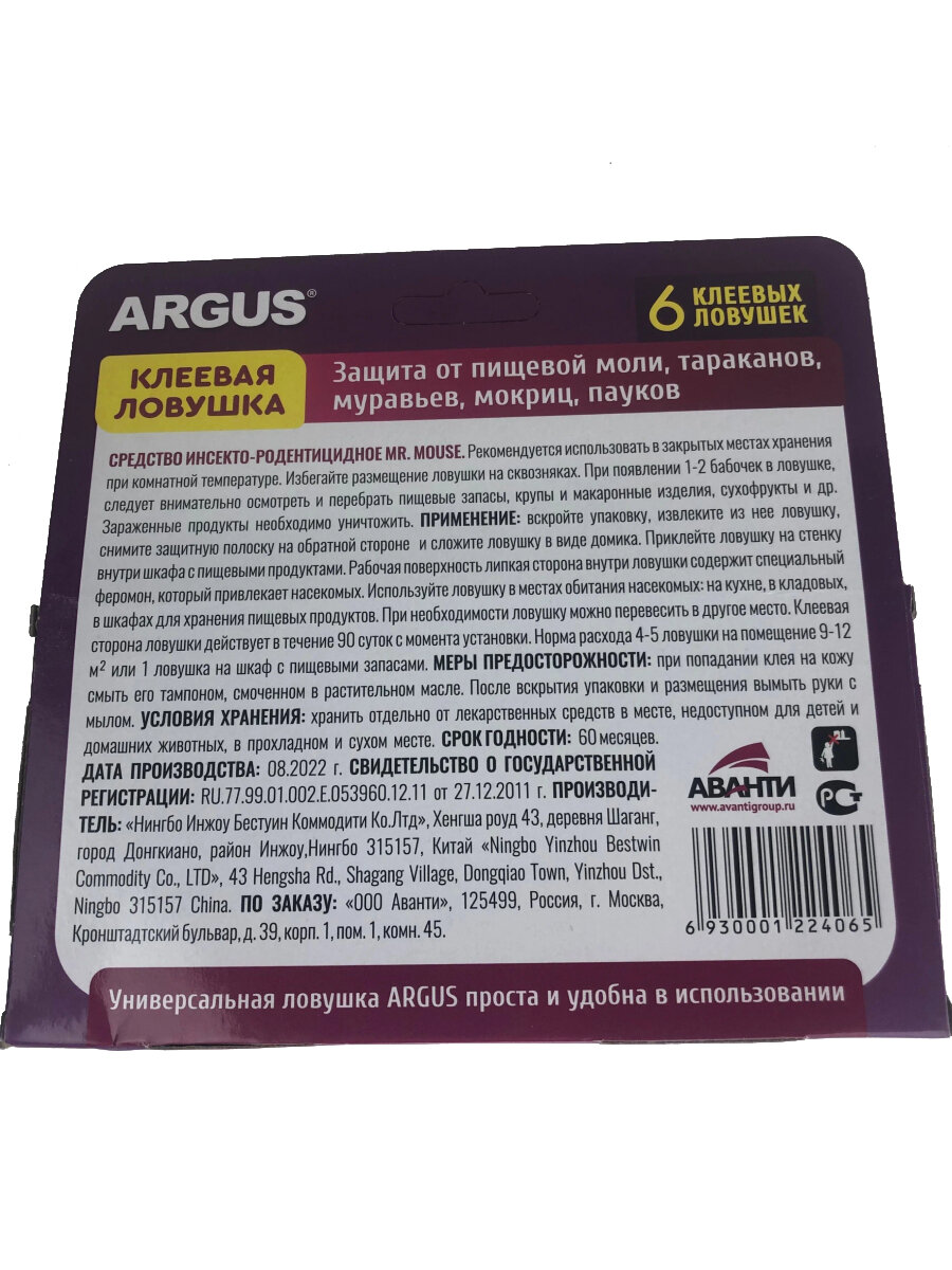 Аргус клеевая ловушка от пищевой моли 6 шт в упаковке