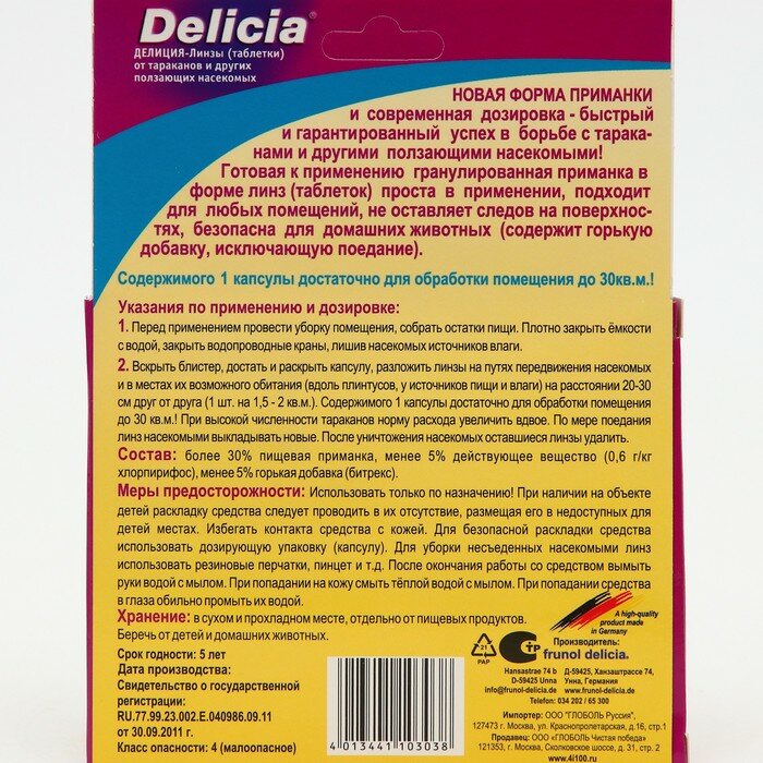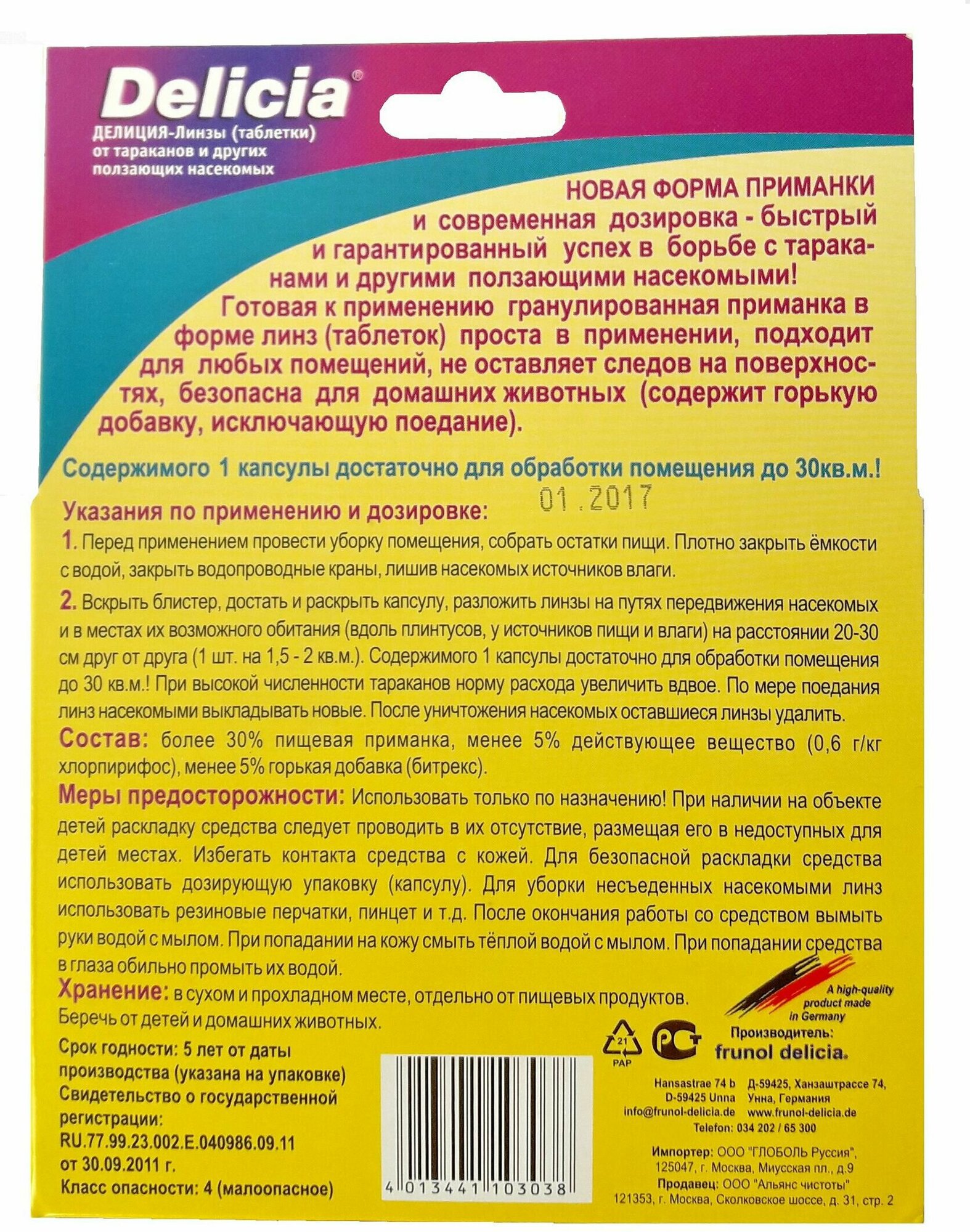 Купить Линзы (таблетки) DELICIA от тараканов, в капсулах, 10 шт