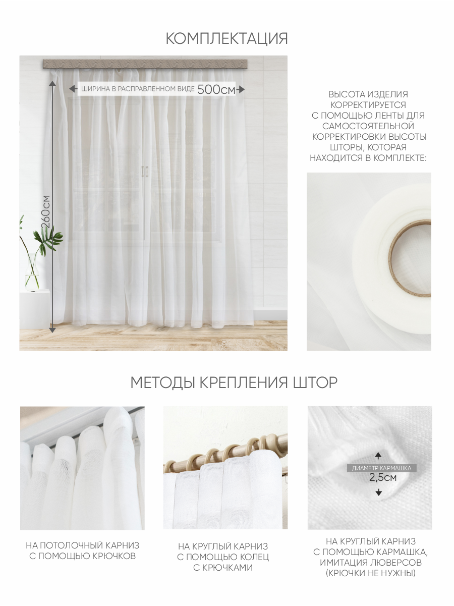 Witerra Штора-тюль Witerra 260х500см, белый, вуаль, пэ100%