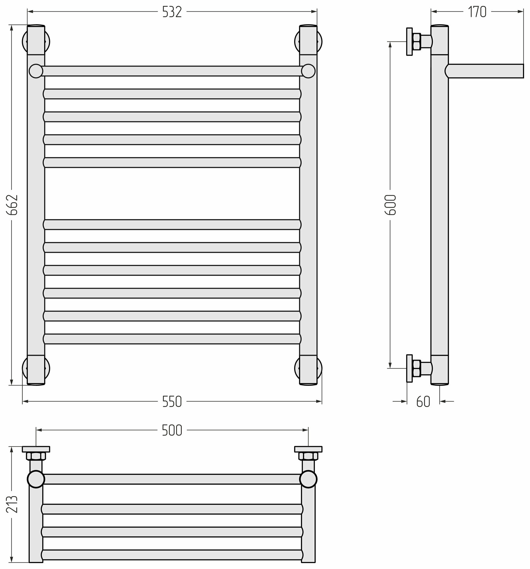 Водяной полотенцесушитель Сунержа 00-0223-6050 "БОГЕМА+" Полотенцесушитель водяной 1П 600х500 мм, без покрытия