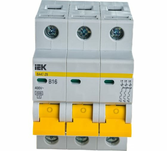 3шт. - Выключатель автоматический трехполюсный 16А B ВА47-29 4.5кА / IEK; арт. MVA20-3-016-B; оригинал / - комплект 3шт