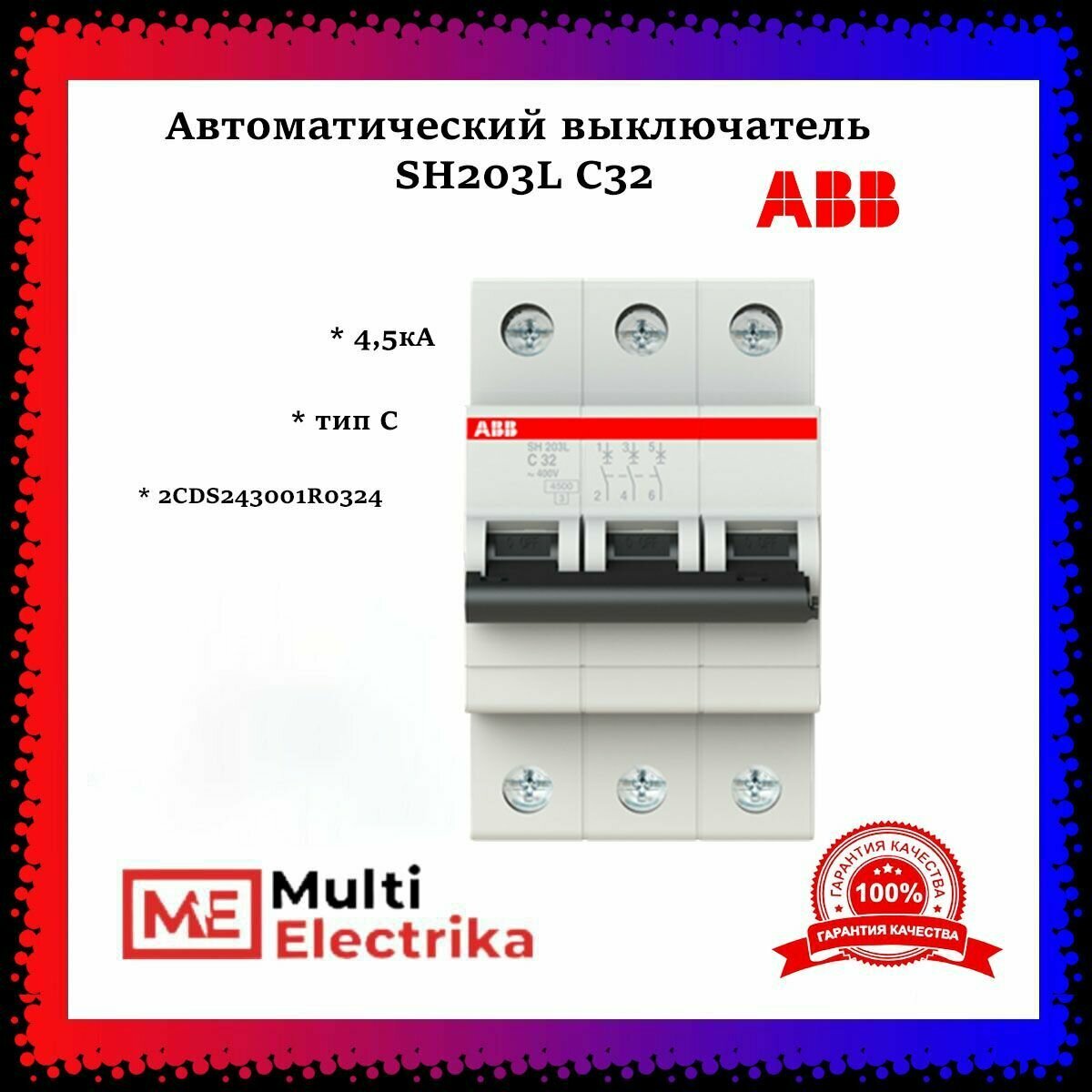 СохранитьВыключатель автоматический модульный 3п C 32А 4.5кА SH203L ABB 2CDS243001R0324 интересное: