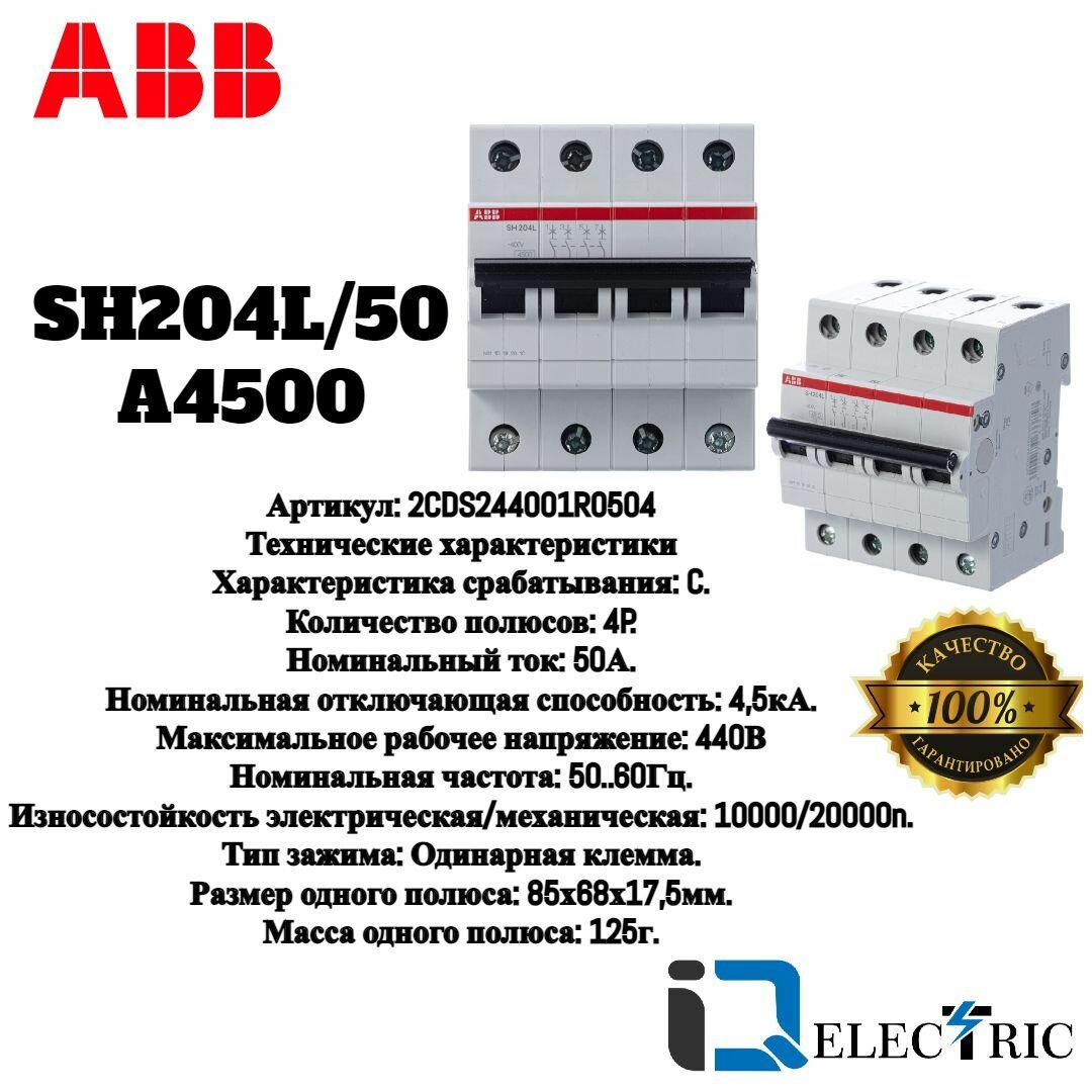 Автоматический выключатель ABB 4P SH204L C50 (1шт) (арт. 2CDS244001R0504)