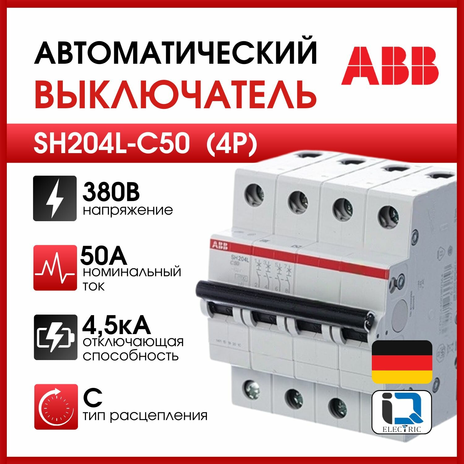 Автоматический выключатель ABB SH204L C50 ампер, 4-полюсный