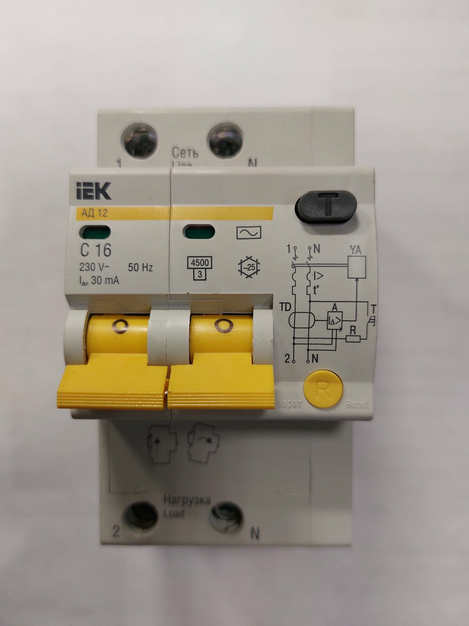 Дифференциальный автоматический выключатель АД12 2Р 16А 30мА IEK