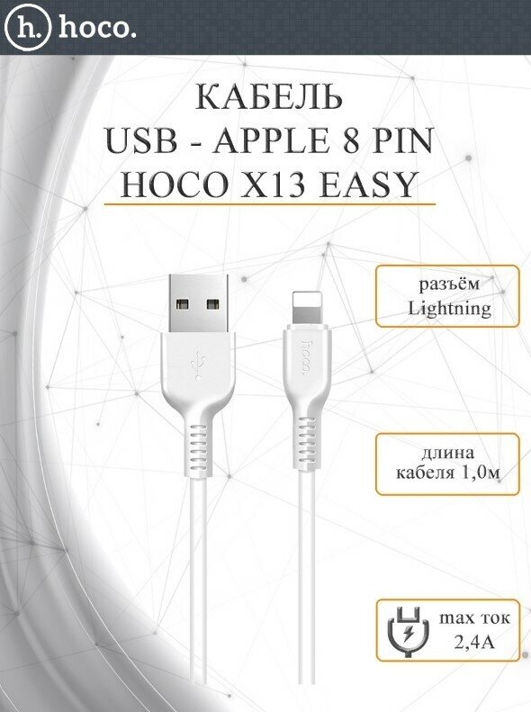 Кабель HOCO USB X13 Easy Lightning 8-pin, 2.4A, 1м, PVC (белый)