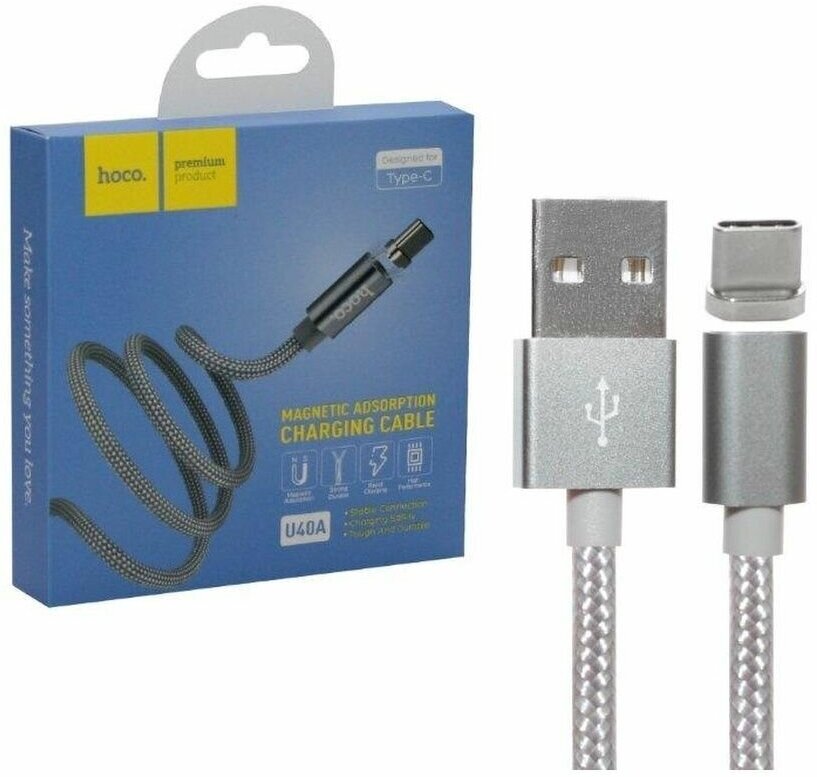 Кабель USB HOCO U40A Magnetic для Lightning, 2.0 A, длина 1.0 м, серый