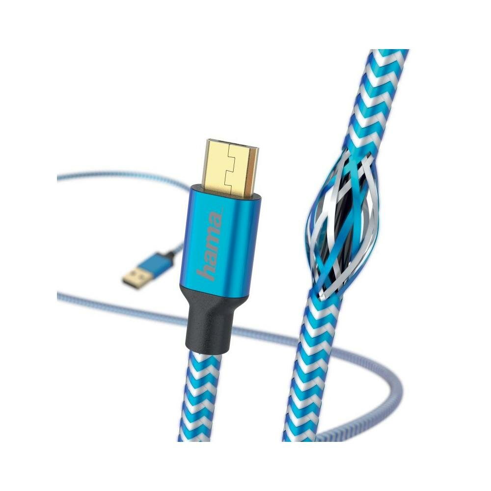 Кабель HAMA 00178289, micro USB (m) - USB (m), 1.5м, в оплетке, синий