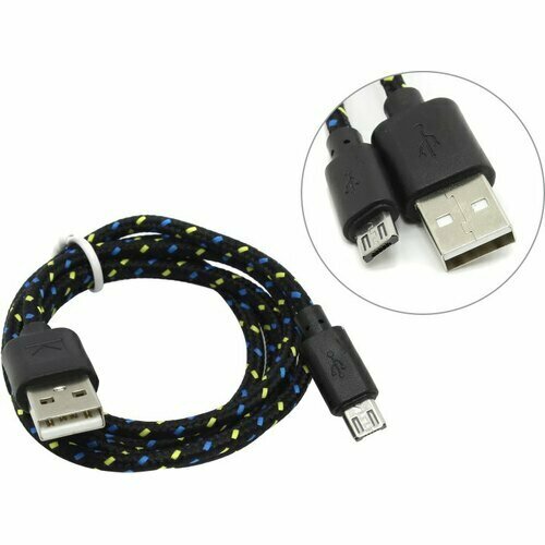 Data-кабели Defender Кабель Defender USB08-03T, USB - microUSB, 1 м, тканевая оплётка, чёрный