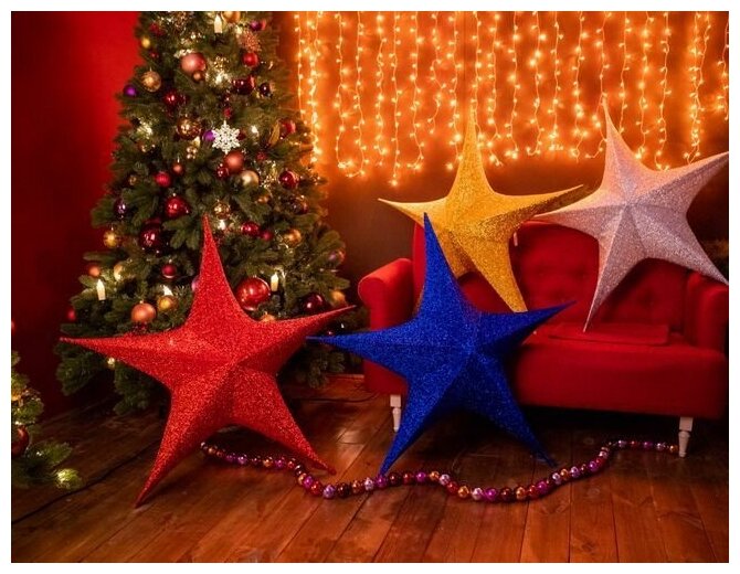 Звезда из ткани с блестками, 110 см, красный