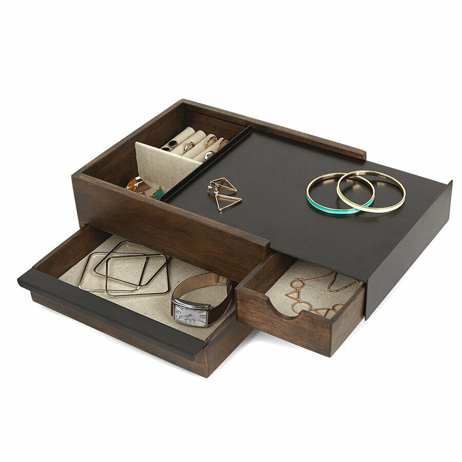 Шкатулка для украшений Umbra Stowit, чёрный-орех