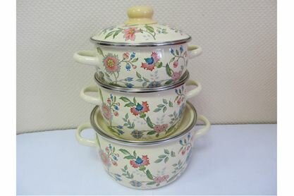 Набор эмалированной посуды 3 предмета "Луговые цветы" слоновая кость / набор кастрюль / набор кастрюль эмалированных