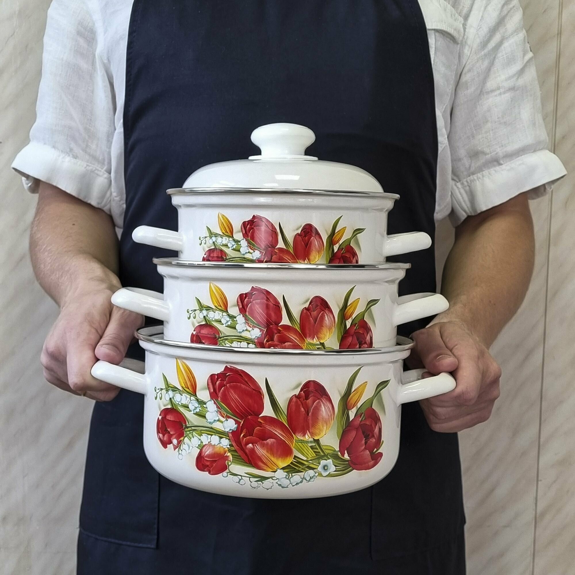 Набор кастрюль "Лысьвенские эмали" "Ласковый май", эмалированная сталь 1,5л.; 2л.; 3л.