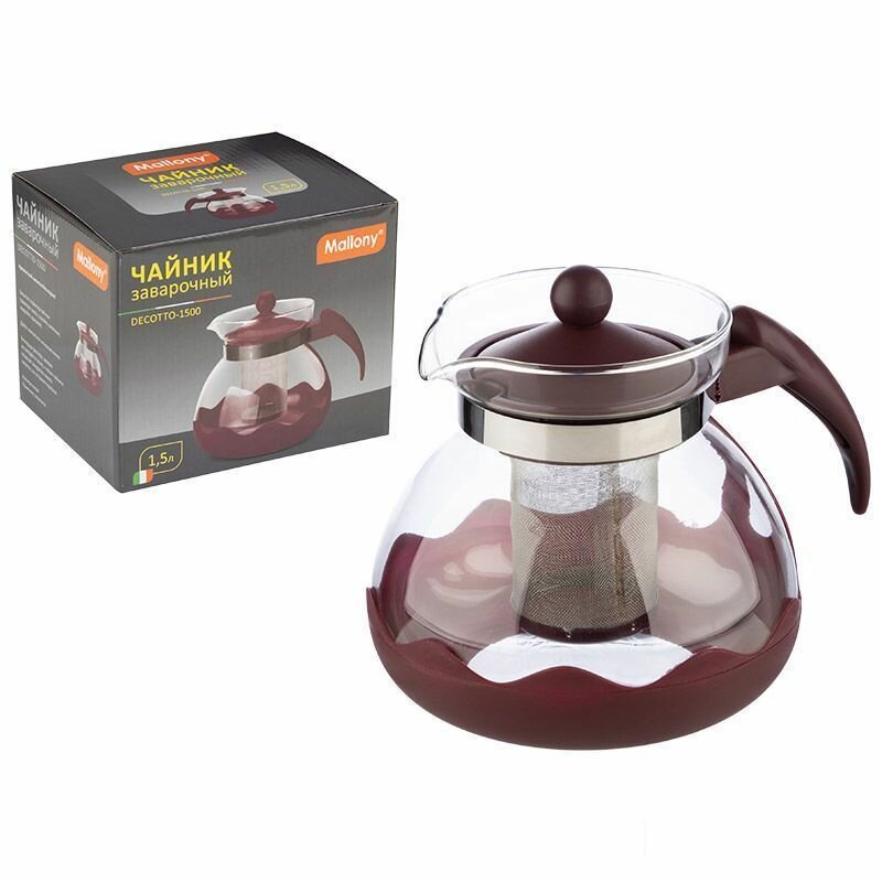 Чайник заварочный Mallony Decotto 1500 1.5л стекло, фильтр-нержавейка (910107)