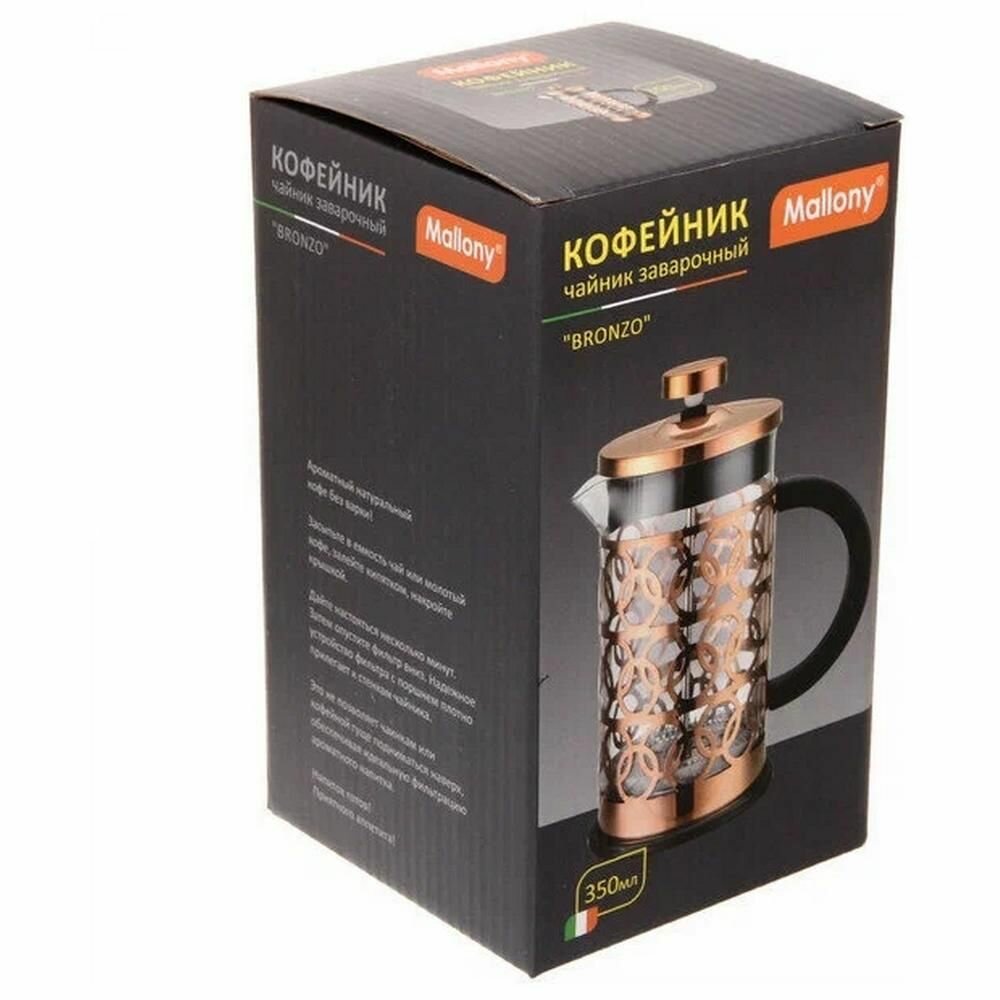 Чайник кофейник (кофе-пресс) стеклянный, 350 мл, нержавеющая сталь, BRONZO, Mallony (950153)