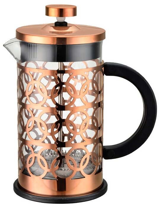 Чайник/кофейник (кофе-пресс), BRONZO, объем: 350 мл, из боросил стекла,корпус из нерж стали (медный)