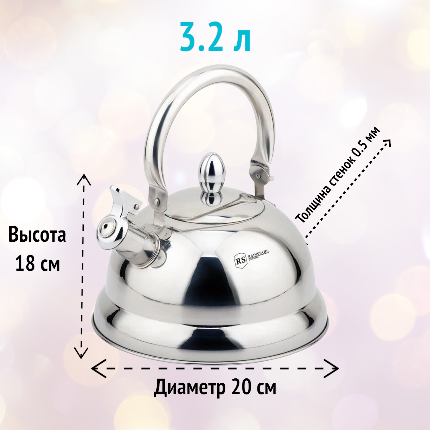 Чайник 3,2л Rainstahl RS/WK-7615-32 (12) Чайник со свистком, корпус из высококачественной нержавеюще . интересное: