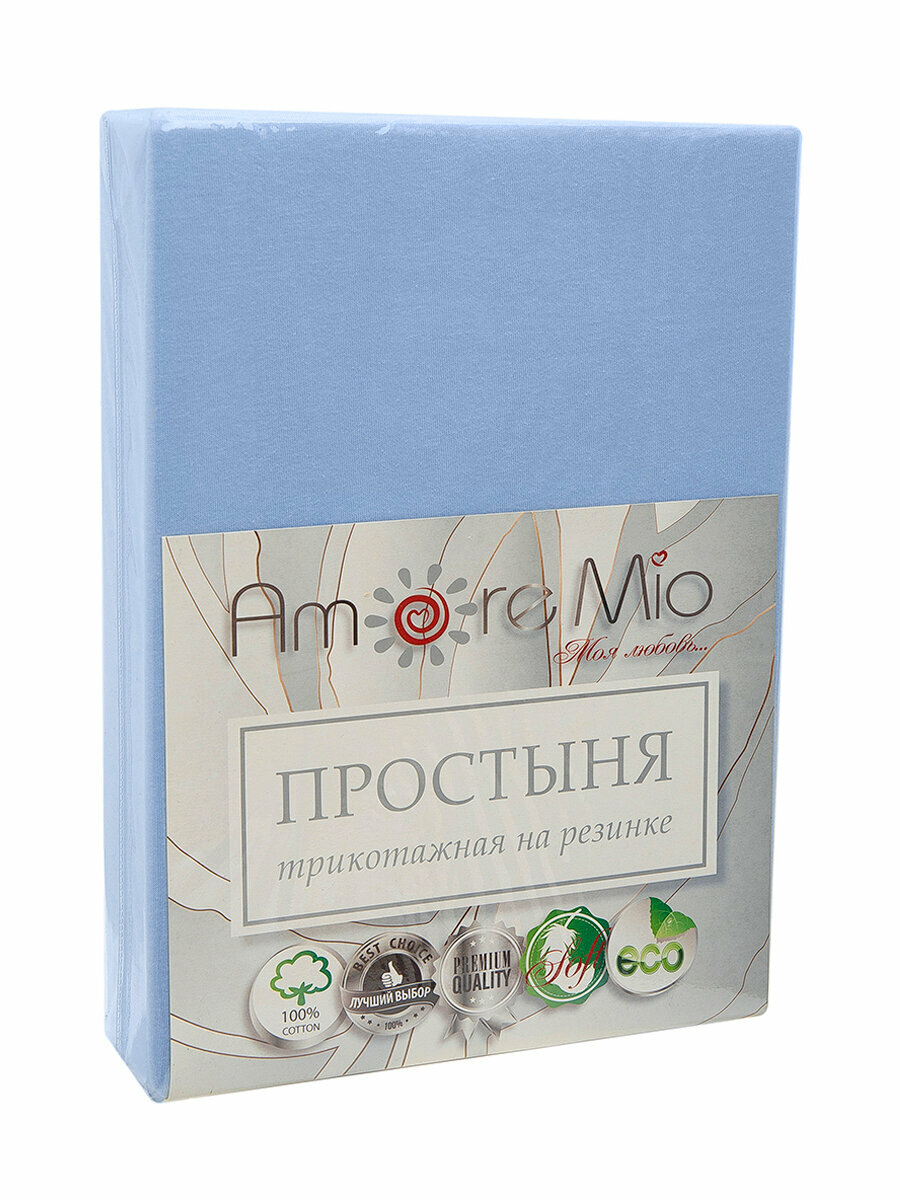 Простыня натяжная на резинке Amore Mio Трикотаж 1,5 сп. Голубой, 23100