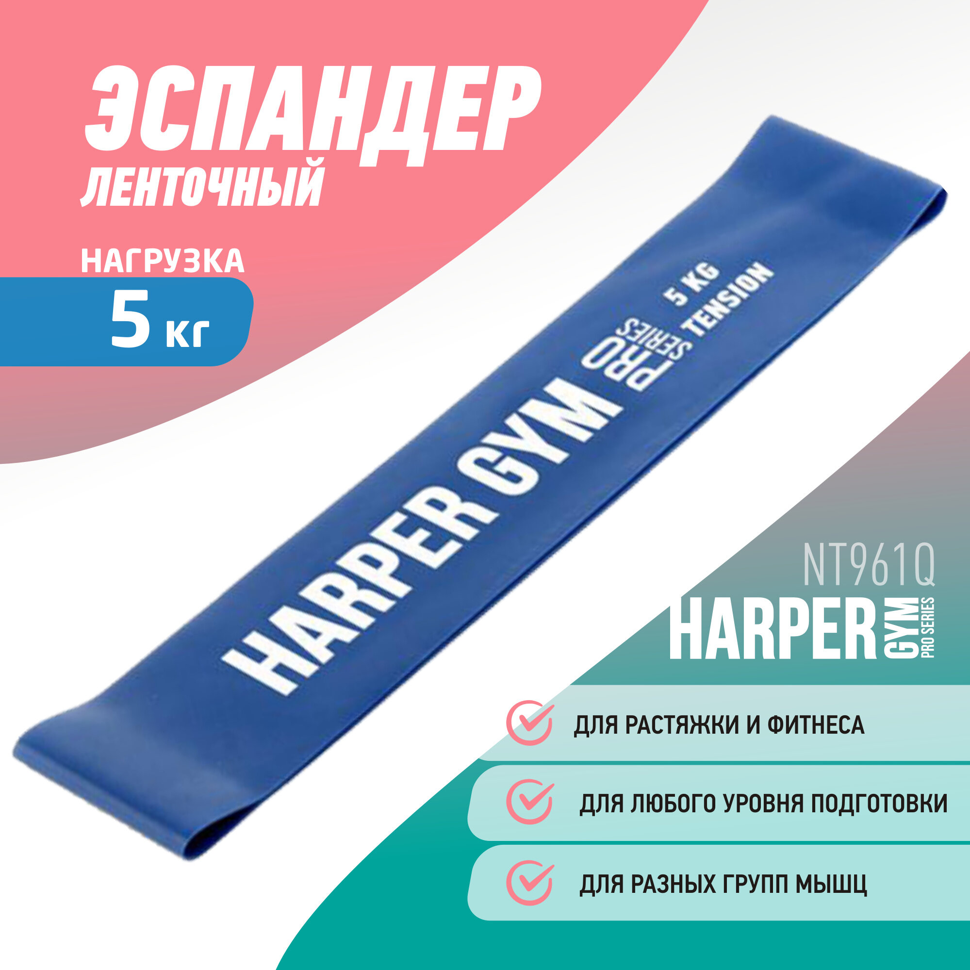 Harper Gym Эспандер для фитнеса замкнутый Nt961q 50*5*0.065 см нагрузка 5кг 4690222151947