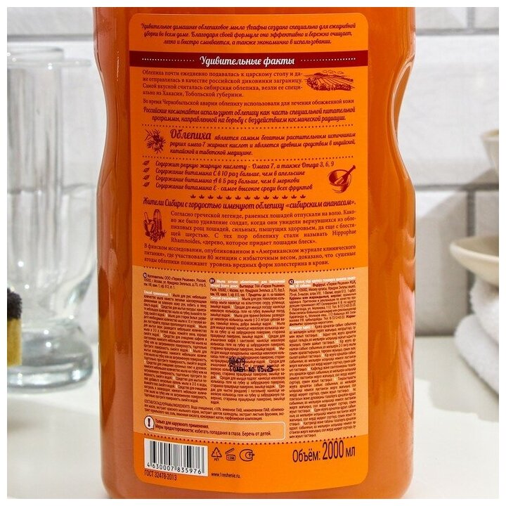 Купить Хозяйственное мыло рецепты бабушки агафьи Облепиховое, для ежедневной уборки, 2 л
