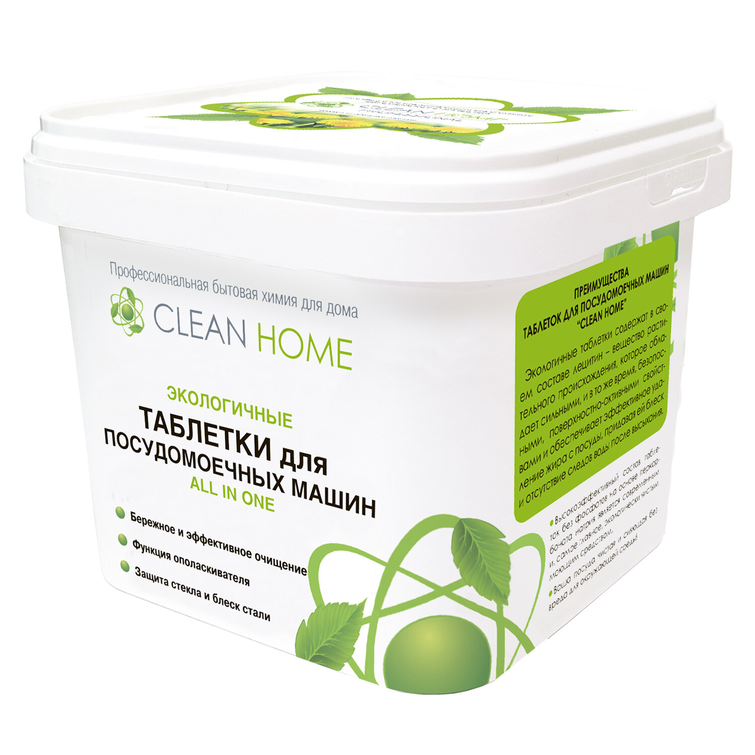 Таблетки для посудомоечных машин Clean home All In One, экологичные, бесфосфатные, 30 шт (4606531205523)