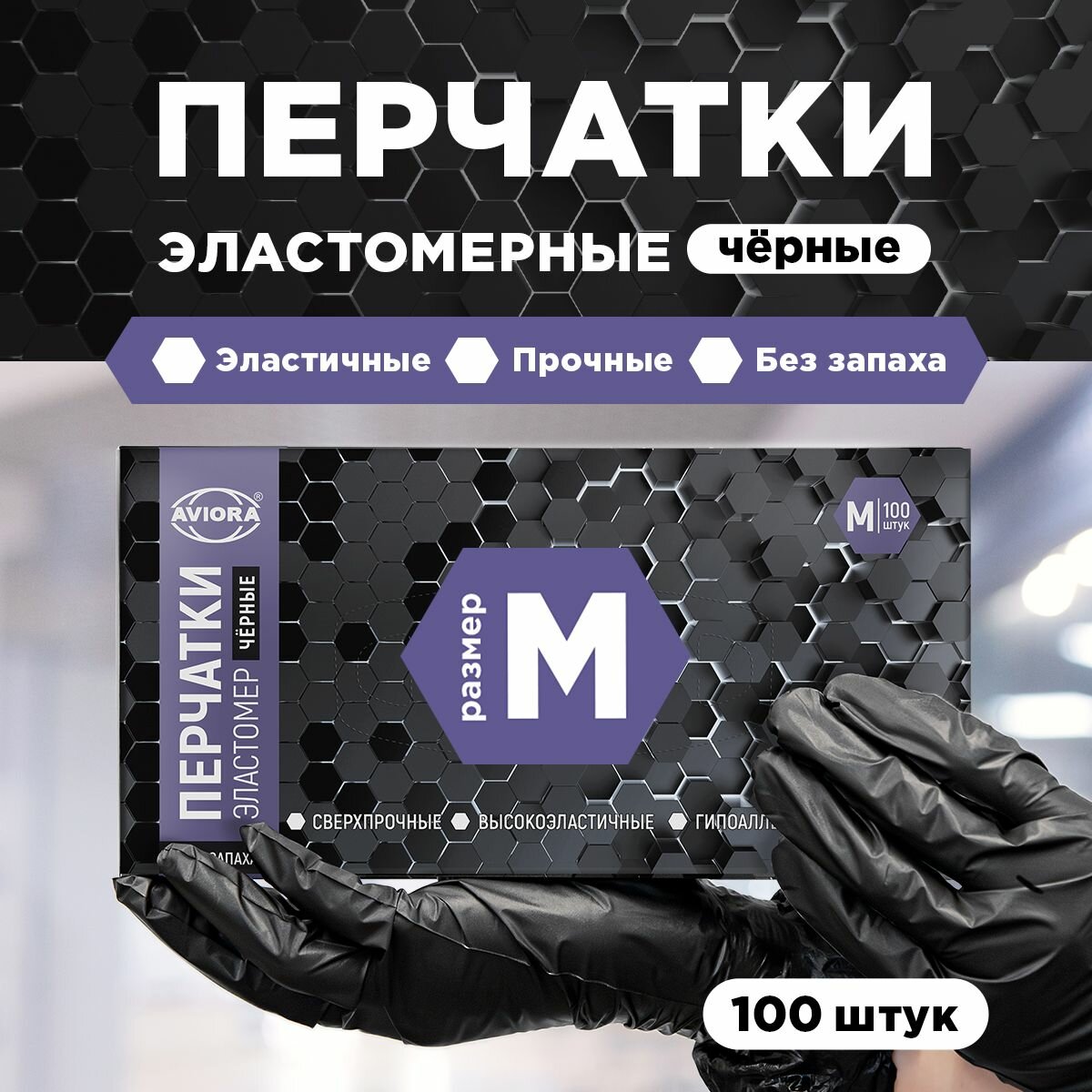 AVIORA Перчатки одноразовые эластомер / черные / размер М / 100 шт. в уп 402-883