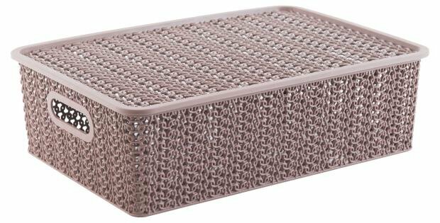 Купить Корзинка VIOLET Корзинка "Вязь" 7,5л 350х 245х105мм с крышкой (розовый нюд) 532111