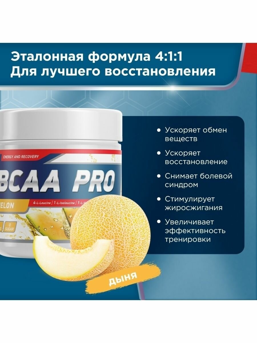 Ниже Вы можете прочитать отзывы на Аминокислоты BCAA PRO 4:1:1 250 г Дыня, ознакомится с подробными характеристиками, посмотреть интересные обзоры и фотографии на Аминокислоты BCAA PRO 4:1:1 250 г Дыня.