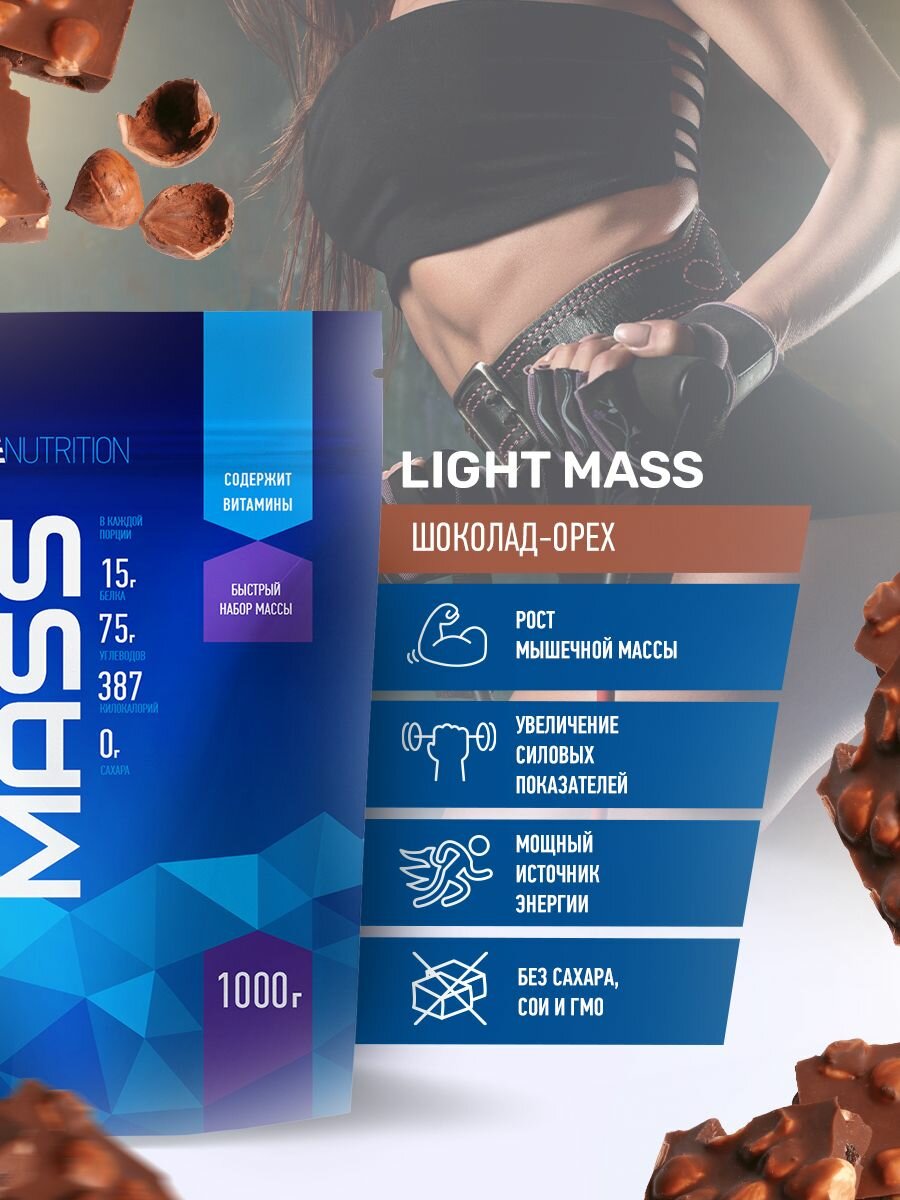 RLine Light Mass 1000гр гейнер для набора массы Орех шоколад