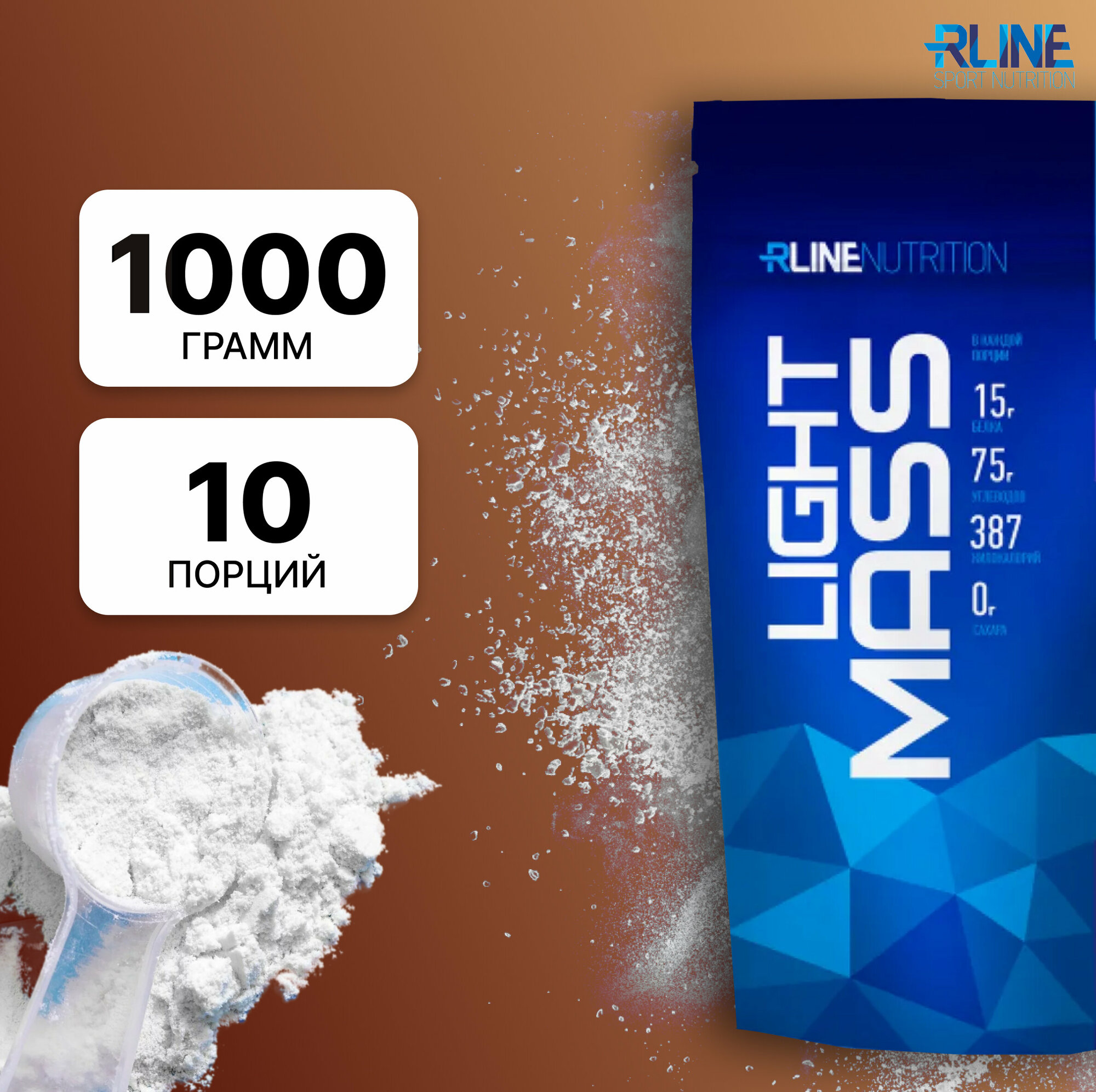 Гейнер Rline Light Mass, вкус пломбир, дой-пак 1000 г, 10 порций