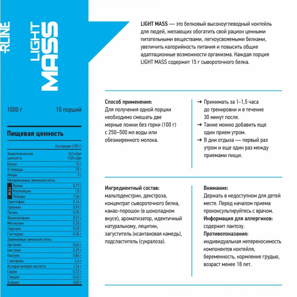 СохранитьRLine LIGHT MASS 1000 g (Шоколад-Орех) интересное: