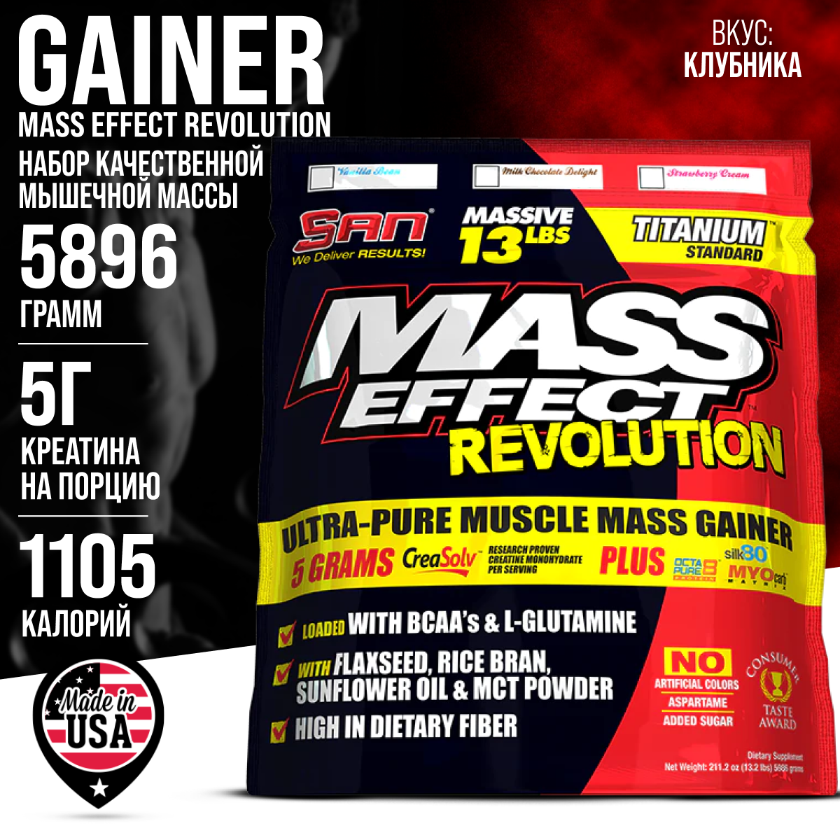 Гейнер S.A.N. Mass Effect Revolution, 5900 г, клубничный крем