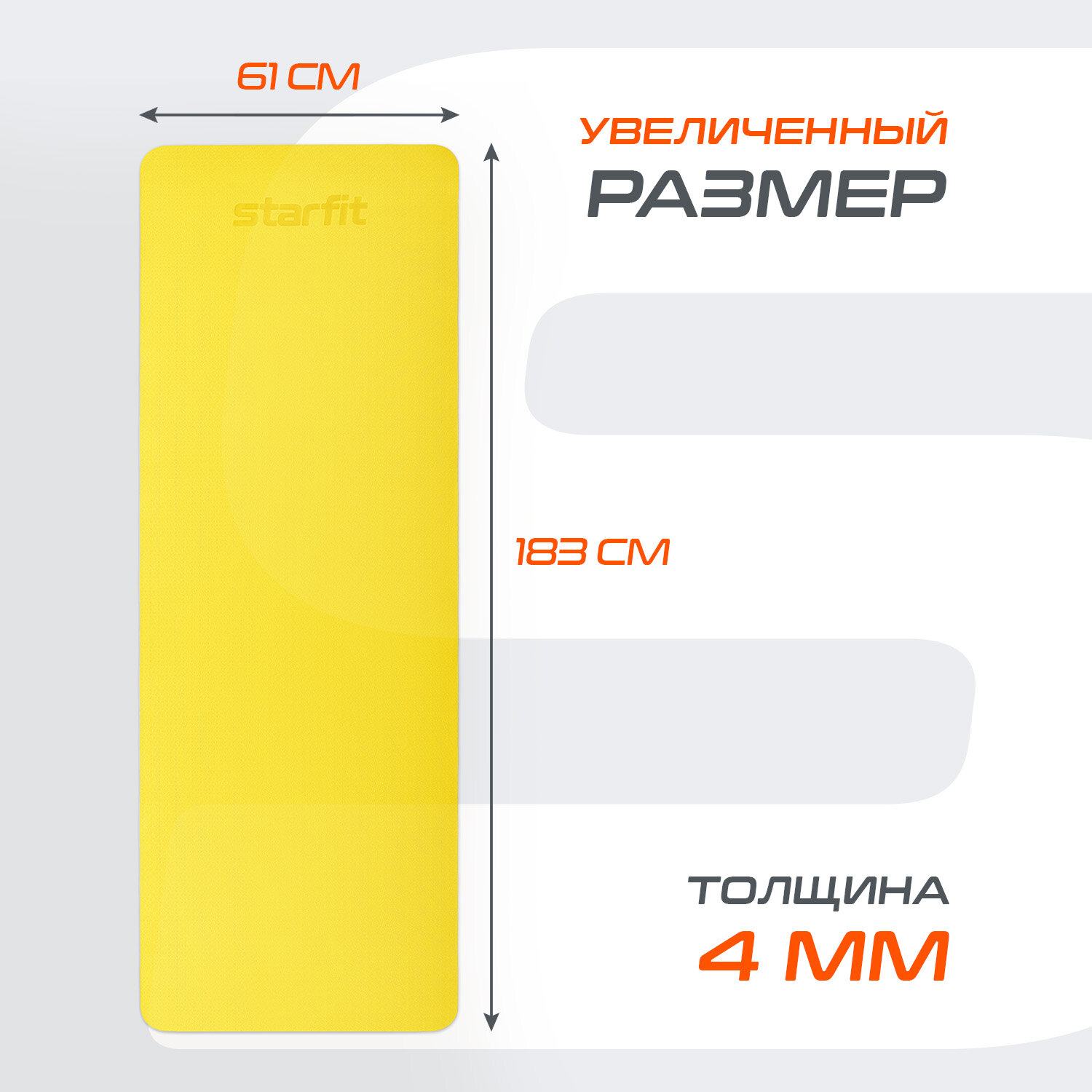 Коврик для йоги и фитнеса Starfit Fm-201, Tpe, 183x61x0,4 см, желтый/серый