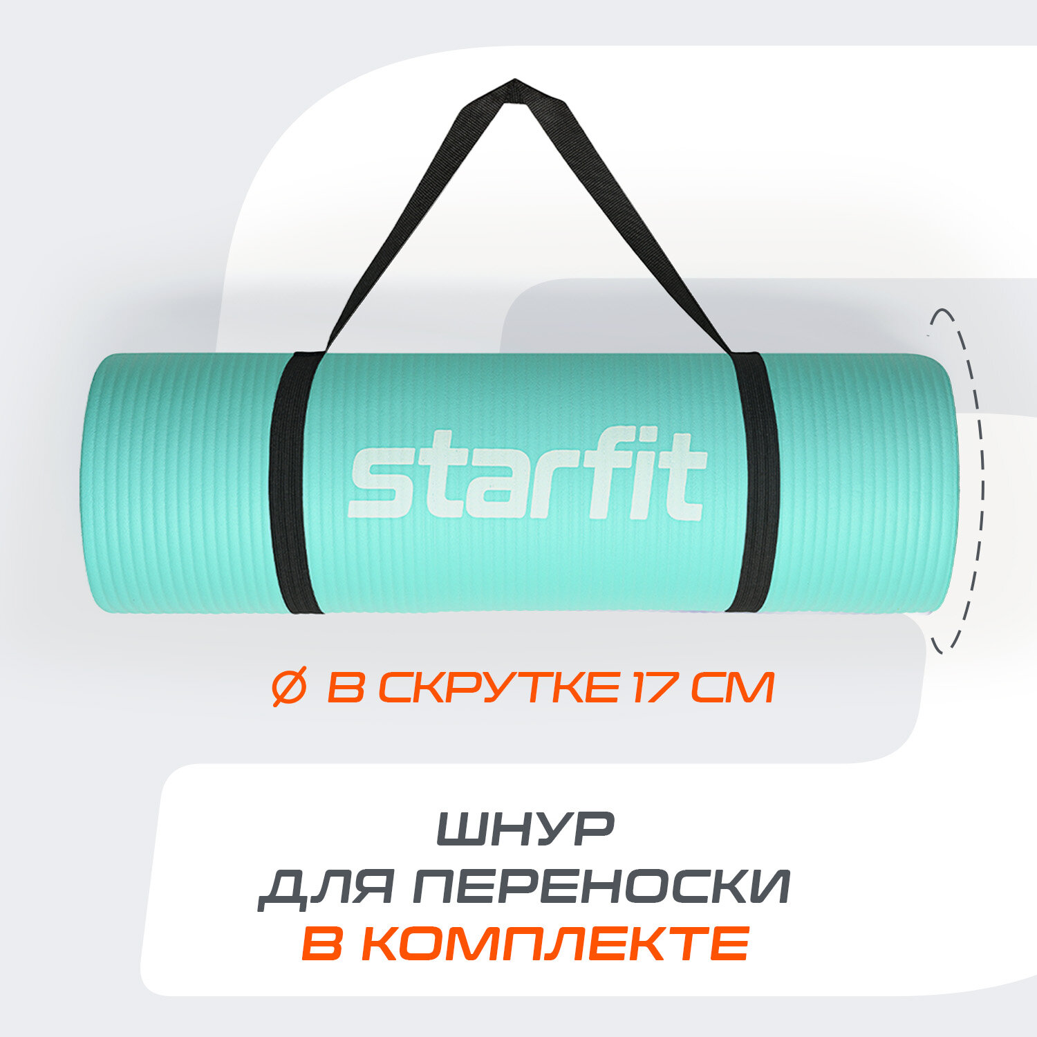 СохранитьКоврик для йоги и фитнеса STARFIT FM-301 NBR, 1,2 см, 183x58 см, мятный интересное: