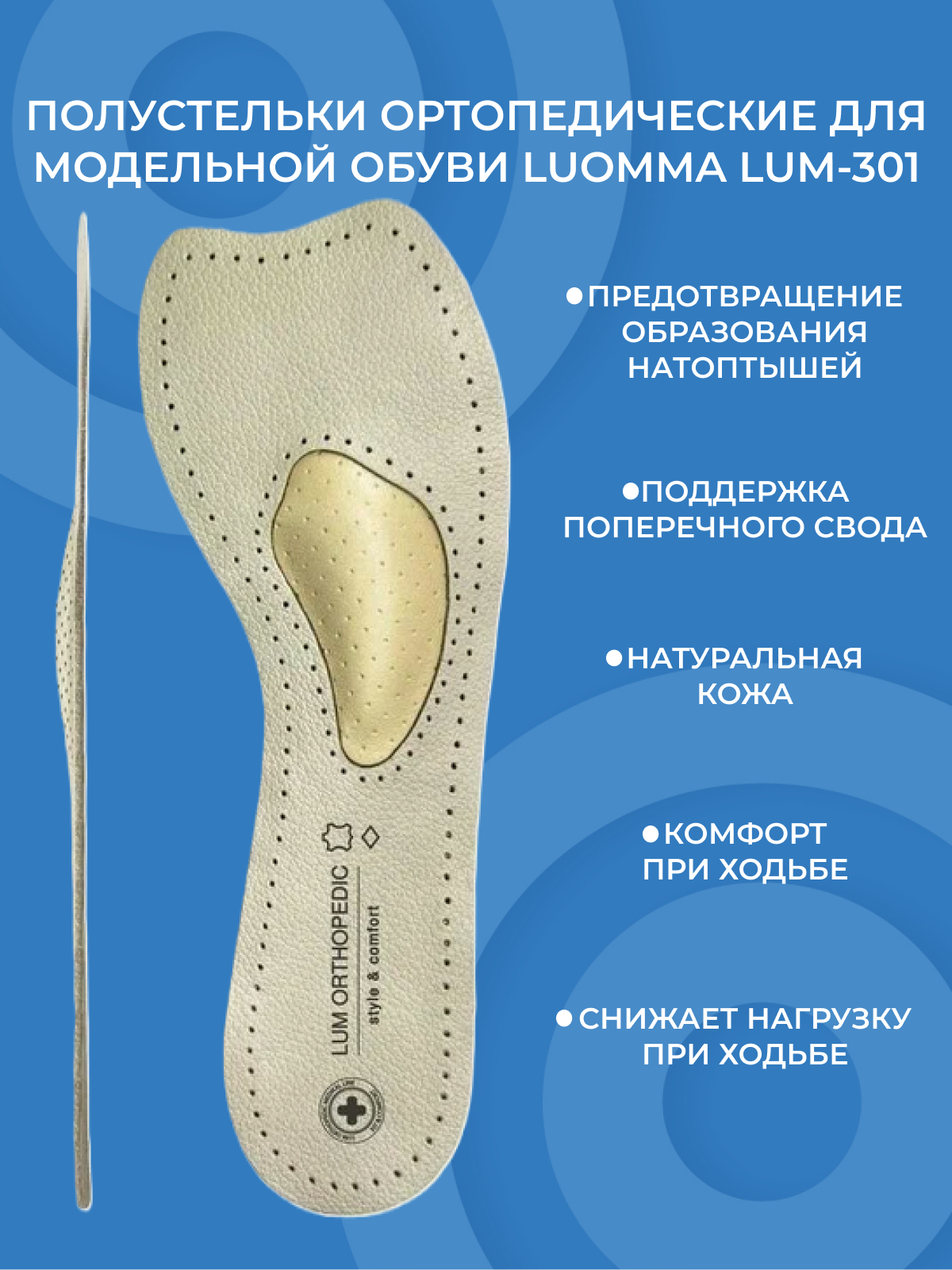 Полустельки ортопедические Lum301 Luomma для обуви на каблуке от 7 см